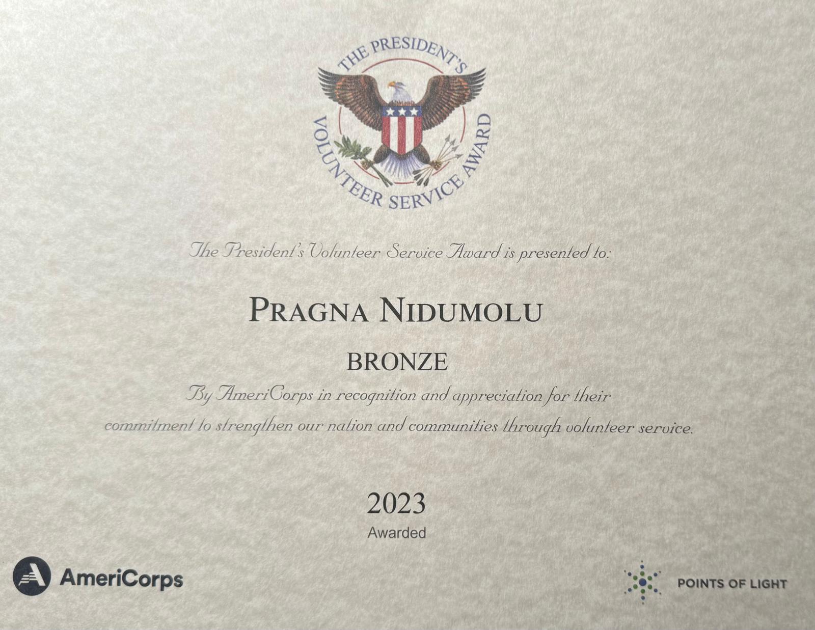 Pragna Nidumolu Awarded America’s top 18 Under 18 2023