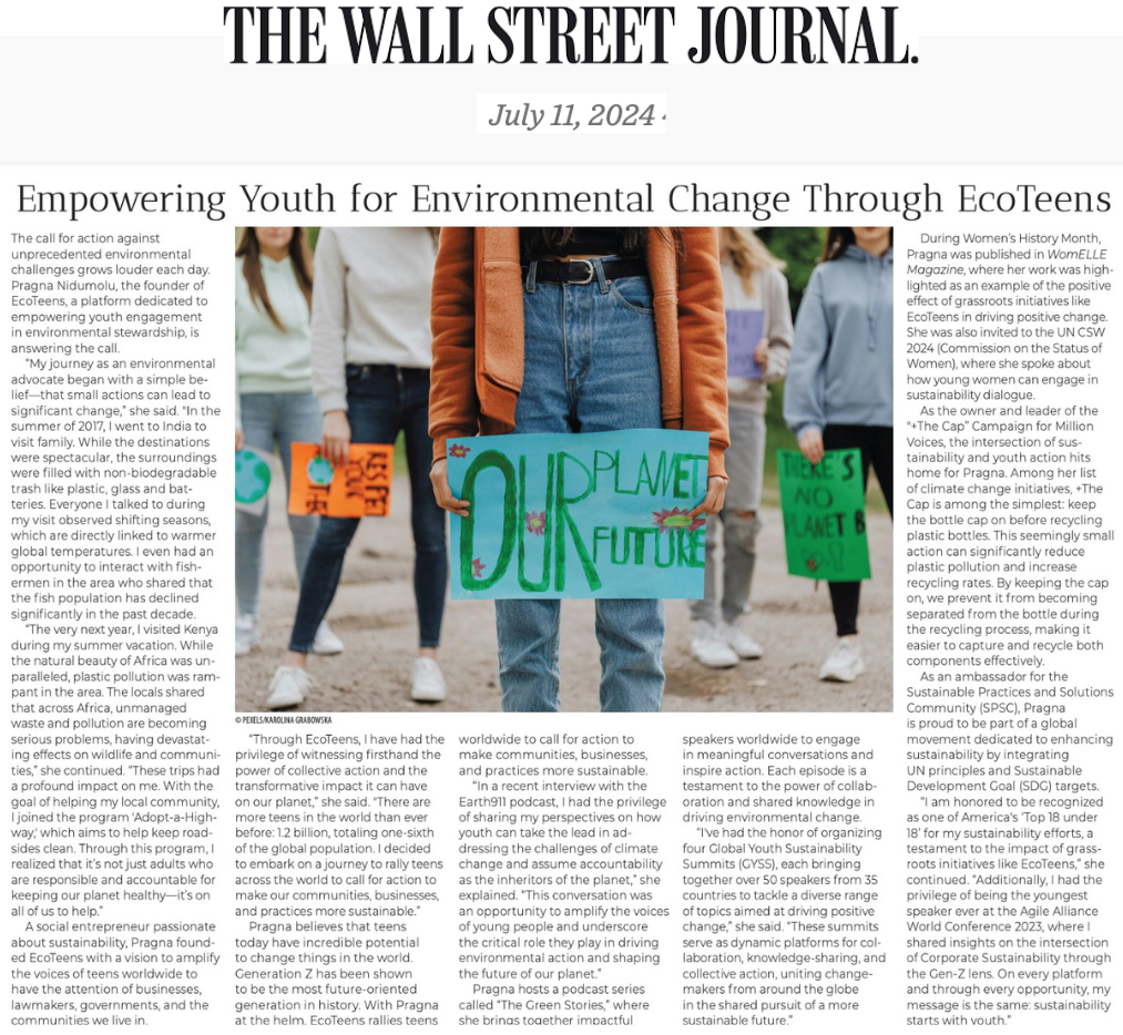 Pragna Nidumolu, Founder of EcoTeens, Calls for Action on Sustainability