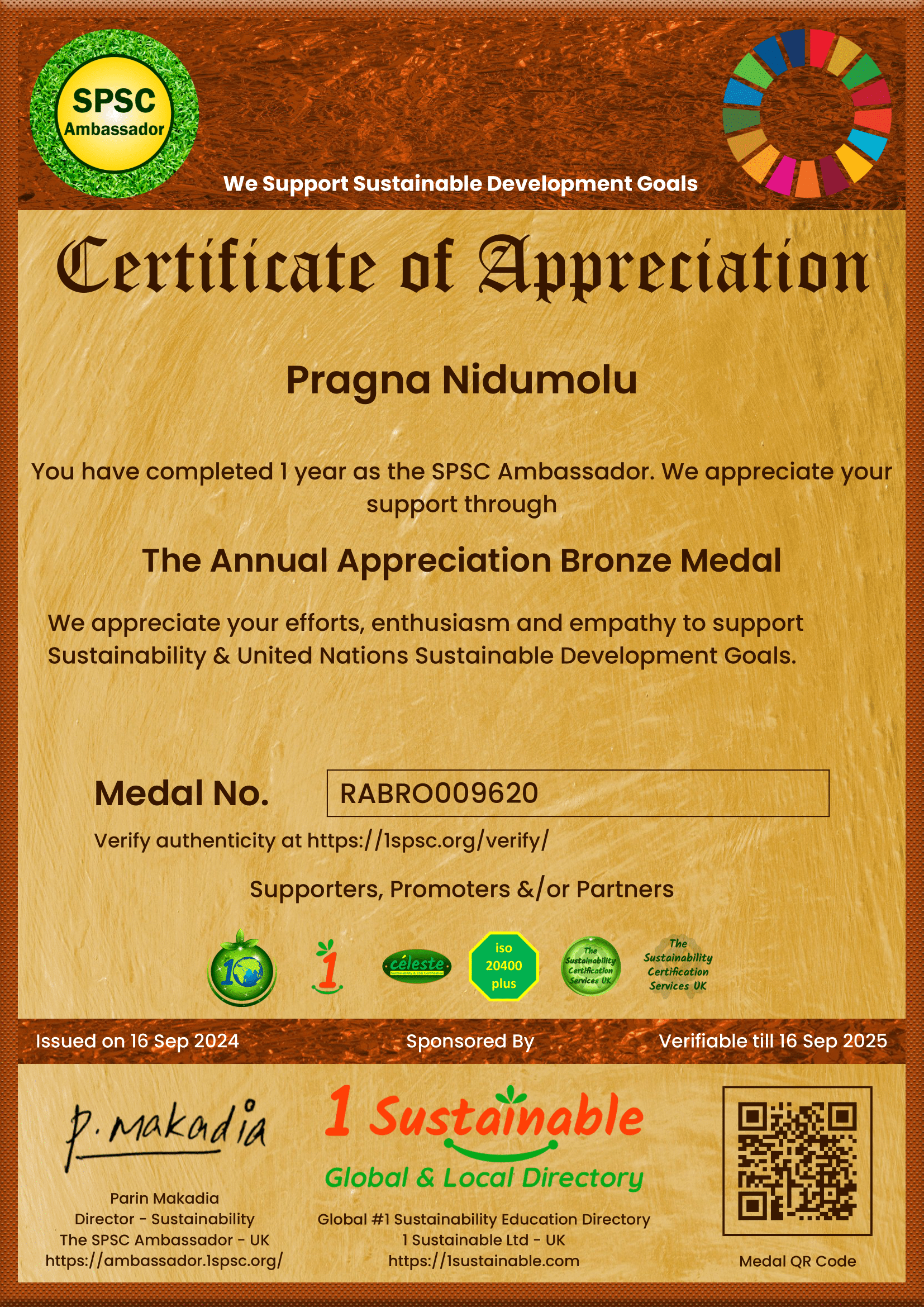 What stands out to me most about Pragna is her unique blend of innovation, leadership, and heart. Whether it's through her eco-conscious cosmetics startup, NetZeroBeauty, or her thoughtful advocacy for corporate sustainability, Pragna has consistently proven that young people can be a powerful force for change. Her ability to connect with people of all ages and her dedication to driving positive impact are truly inspiring.